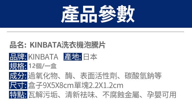 12分鐘前【日本進口】去污清潔泡騰片,適合清潔洗衣機水槽馬桶多種用途!無效全額退款, 固保三年! - 日本KINBATA洗衣機泡騰片 入6組60個 NT$1299