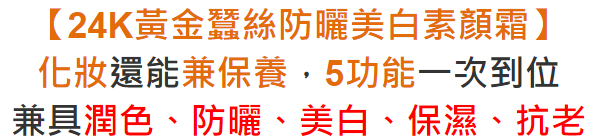 4分鐘前【黃金蠶絲防曬美白素顏霜】榮登素顏界的天花板!脫口罩後必收「媽生霜」登場,化妝保養兼防曬1瓶hold全場!!美白、淡斑、防曬,三效合一,夏日必備這一瓶就夠了! - 【最優惠】買三送五 NT$1399