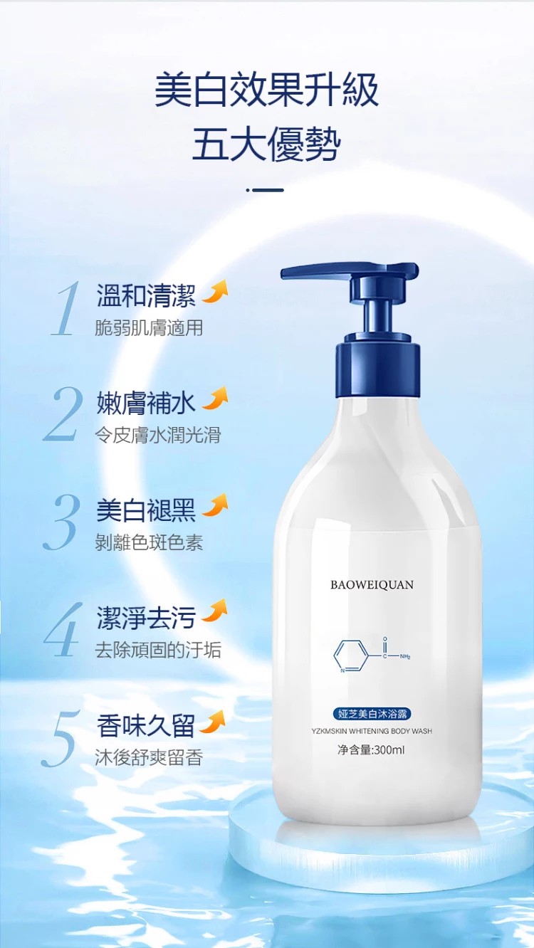 20分鐘前#3瓶養成冷白皮#【日本熱銷榜NO.1!SPA級煙酰胺美白沐浴露】持久留香/美白溫和無刺激 改善粗糙身體 深層清潔無殘留 漂亮MM必備~!【現在下單還贈送小禮品噢~】 - #夠用一整年# NT$1098【六組入】(均價183/組)